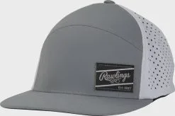 The Rawlings laser cut vented snapback hat offers a sleek, modern hat design. The Rawlings black ColorSync patch in the bottom corner adds the perfect touch of style to the sleek gray design. As a result, it’s perfect for any baseball player or avid fan.
