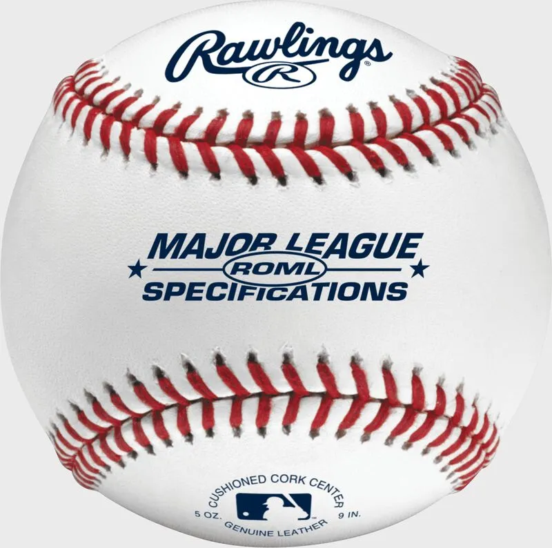 The Rawlings ROML baseball offers a Major League Specification design with a full-grain leather cover and a Rawlings Major League seam for consistency and durability.